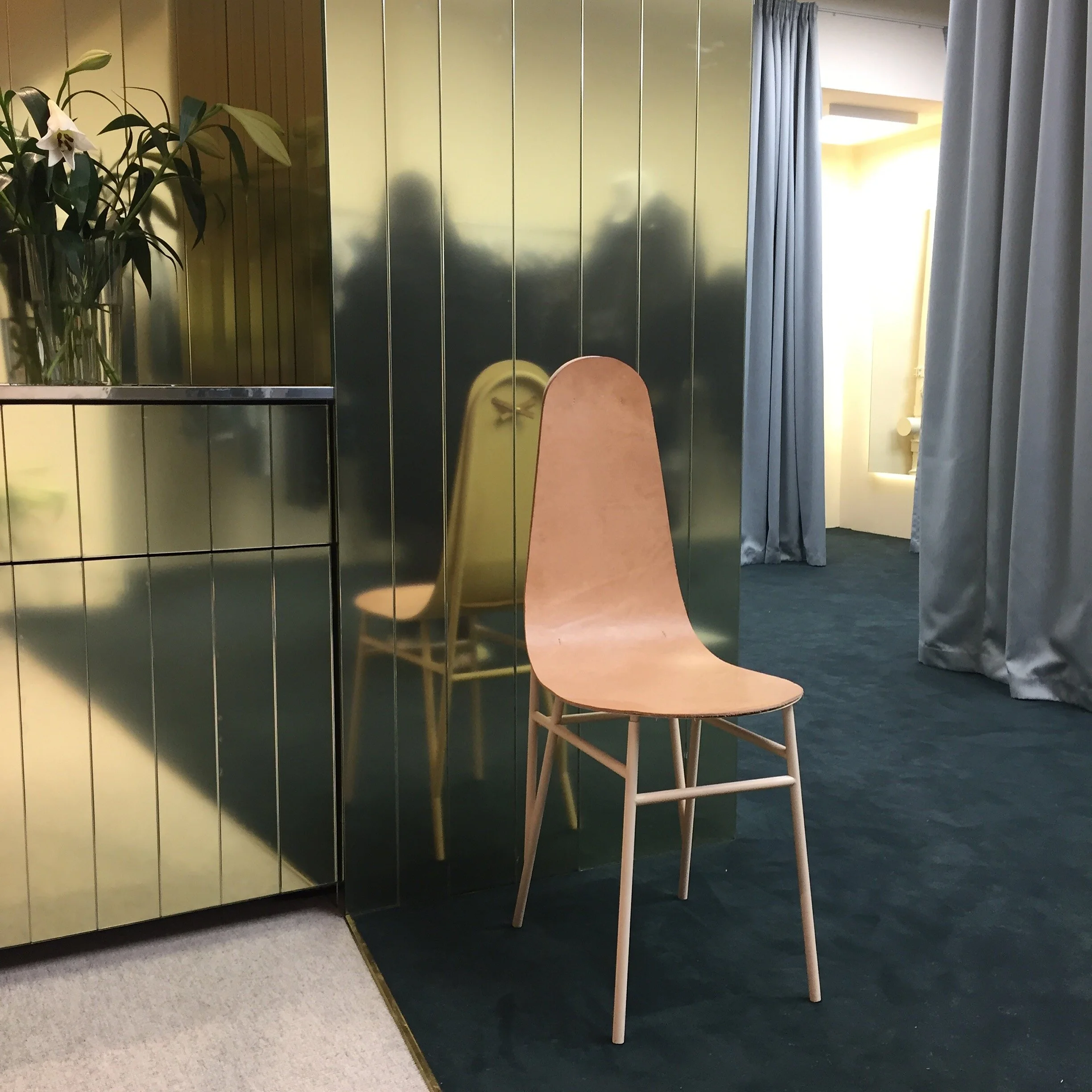 Whit and output spanning architecture, art and design, Kevin Hviid makes furniture in bold forms with a playful twist. His work is infused with Memphis shapes and color references: the rounded “Bob Bench”, for example, is geometric and elegant, in vivid but understated hues. For fashion label Ganni - a cult brand known for its stylish, offbeat womenswear, like leopard-print tea dresses and cowboy-inspired ankle boots - Hviid created the “Queen” chair, one of a series of four seats. It combines steel and soft leather in peachy tones, and is notable for its high oval back and slender profile. You can road-test it at Ganni´s shop on Store Regnegade(T20885311), in addition to his 3m-tall swinging “Iris” chair, assembled from nylon straps in a spectrum of neon that wrap a steel frame.